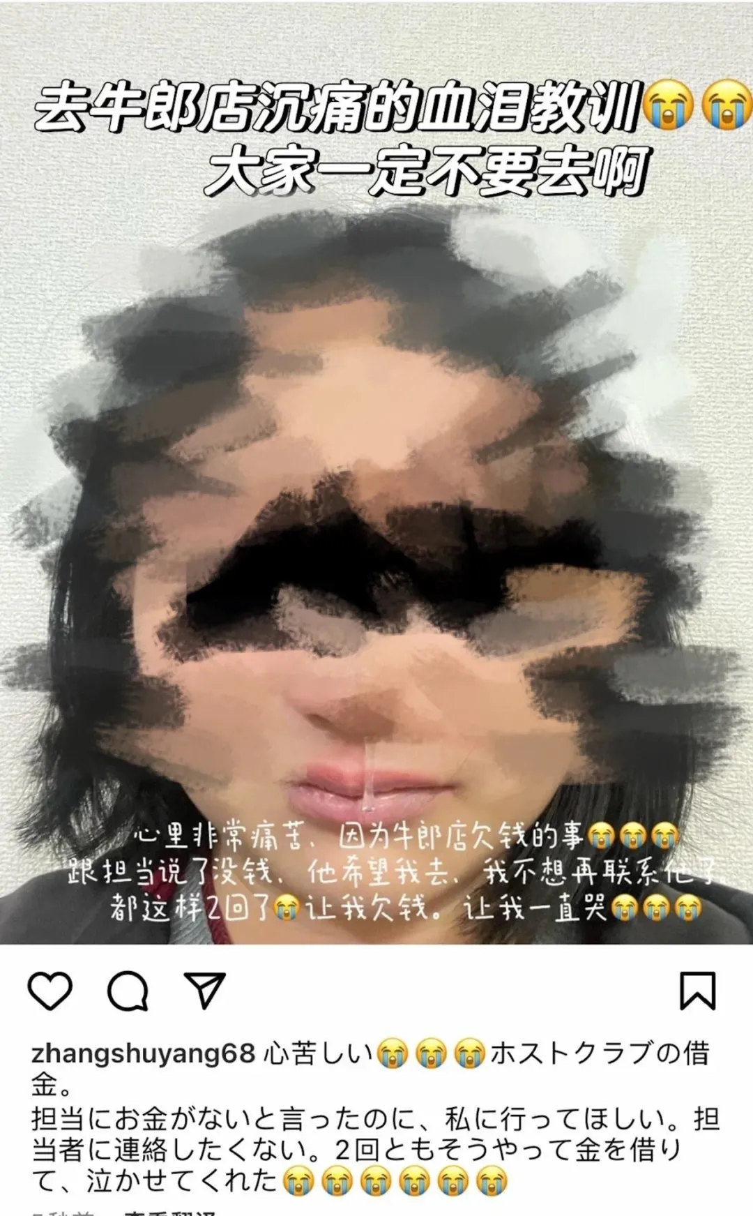 這名博主還説,因為自己沒有工作,也沒有朋友,就算自己有點錢拿去還債,到店後又被強迫消費,導致惡性循環,最後欠下了9萬日元的賬單。