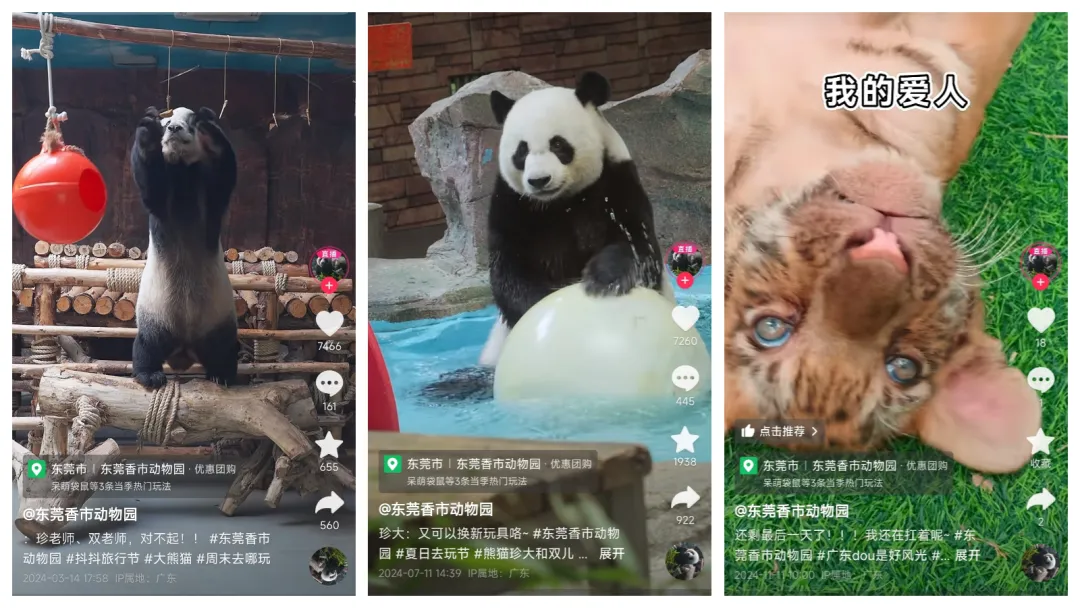 隨後,便是一路爆紅。今年國慶節期間,香市動物園在抖音開啓活動“動物幼兒園系列之小老虎見面會”,讓園區兩隻新出生的小虎寶和遊客朋友有近距離的互動,“直播+短視頻”雙覆蓋的組合,使得見面會當天現場人氣高漲。目前,動物園超30%的門票收入來自抖音生活服務。
