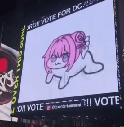 Doro的影響力越來越大,甚至有人把它送到了時代廣場的大屏幕之上。