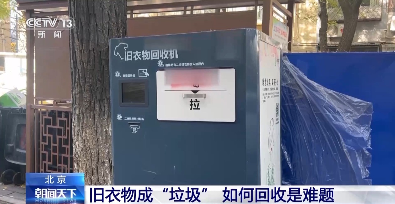 一些居民表示,大量不穿的衣物不方便堆在家裏,又找不到合適的地方回收,因此就扔進了垃圾桶。在朝陽區的一個小區,院內設置了一個專門回收舊衣物的回收箱,但記者操作發現,該設備已經無法正常使用。