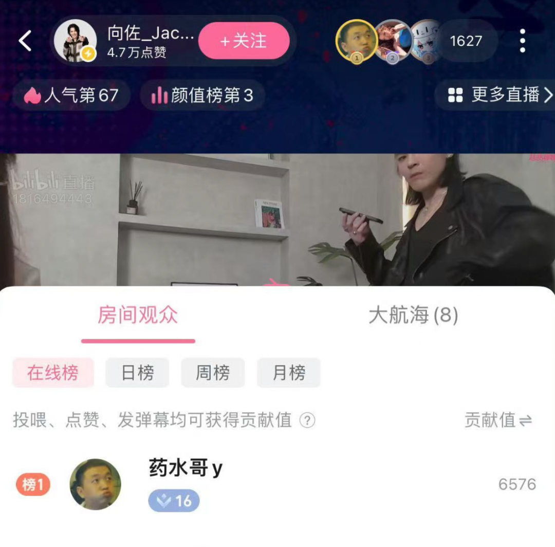 這種“交換”還出現在更多場景中,比如藥水哥成為了向佐的“榜一大哥”:11月初,向佐直播,藥水哥進入他的直播間連刷幾個禮物,向佐發現藥水哥後,打來微信視頻想與他連線。