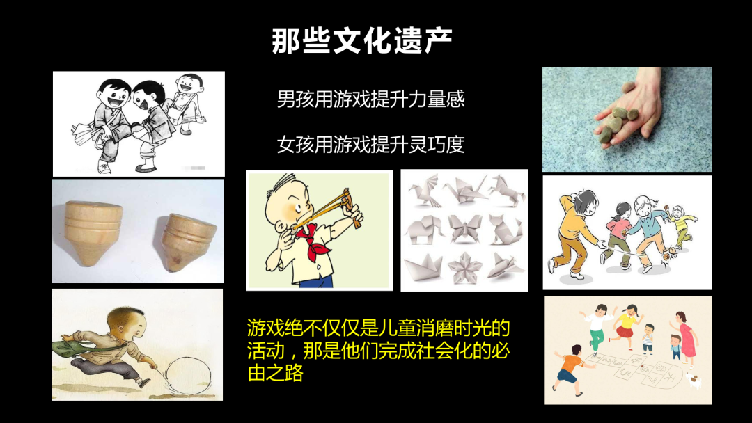 今天我們就要思考,放學了、放假了,孩子應該怎麼生活?我是八零後,而且來自農村,這張片子上面展示的這些遊戲,我都玩過,這些遊戲不僅給孩子帶來了幸福和快樂,男孩用這些遊戲要提升力量感,女孩要通過這些遊戲提升她的靈巧度,最最關鍵的是,這些遊戲不需要有一個大人教的。有需要一個大人去刻意教一下自己孩子,怎麼玩這些嗎?