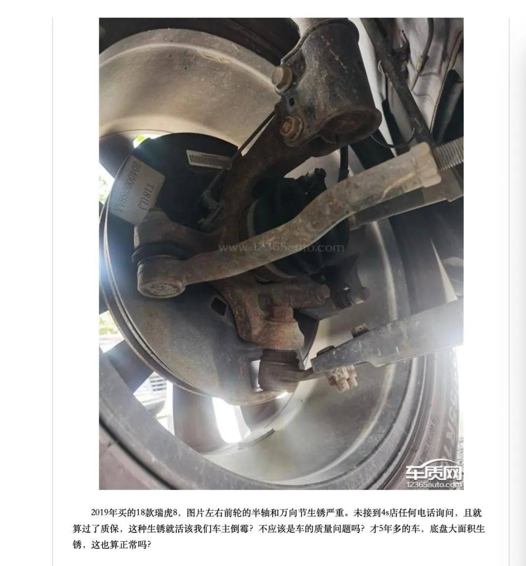 車身生鏽,這一長期困擾奇瑞汽車的“頑疾”,在瑞虎8身上並未得到根治。多位車主反映,在購車後的短短幾年內,車身的底部、門框、後備廂等關鍵部位便出現了明顯的鏽跡。有的車主甚至表示,自己的瑞虎8僅使用了一年多,車身底部的鏽蝕情況就已經十分嚴重,讓人觸目驚心。這種防鏽處理的明顯不到位,不僅嚴重影響了車輛的外觀美觀,更對車輛的整體結構安全構成了潛在威脅。