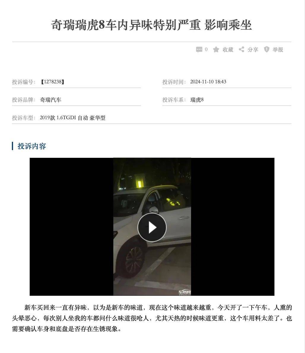 奇瑞瑞虎8的銷量增長雖然令人矚目,但質量問題的頻發卻讓消費者的信任度大打折扣。車主們對於車身生鏽和車內異味等問題的投訴逐漸增多,已經從個別事件發展成了系統性的質量問題。這些問題不僅嚴重影響了消費者的用車體驗,更讓奇瑞品牌的形象受到了前所未有的衝擊。