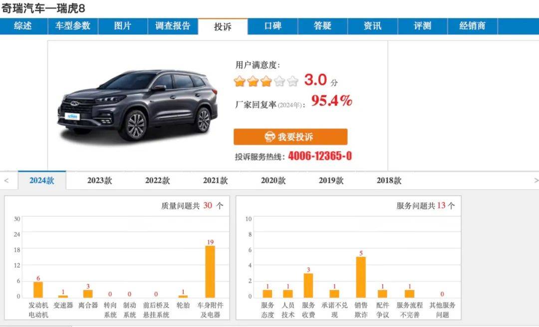 奇瑞瑞虎8銷量攀升背後:車身生鏽、車內異味投訴不斷_風聞