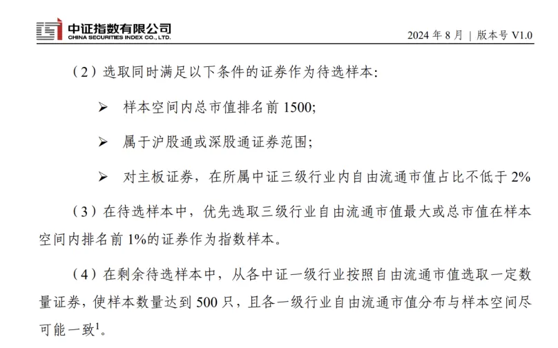 指數成份股的選樣,不是簡單的累加,而是有一套科學的規則。給大家列一下中證A500的編制方案: