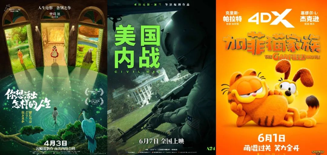 在今年阿里影業的引進片成績單中,清明檔的《你想活出怎樣的人生》是宮崎駿新片首次在國內公映,同時也是宮崎駿的“告別之作”,是無數吉卜力動畫粉絲必刷之作;《美國內戰》是“網紅製片公司”A24的最新大投資力作,同樣被無數影迷所矚目;《加菲貓家族》是海外風靡數十年的IP時隔18年再登大銀幕的新作,更是情懷拉滿。