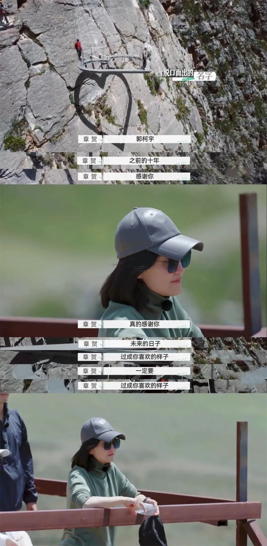 他接過安全裝備,大步朝着起點走過去,身後,郭柯宇給他加油,他義無反顧地,頭也不回地向下爬。觀景台上,其他嘉賓猜測着章賀會喊什麼話,郭柯宇開玩笑説,章賀或許會喊“我愛我自己”。