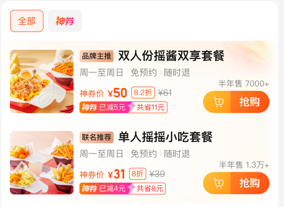 美團平台顯示,SH4KE上海多家門店內的一款售價34元的團購套餐,半年售出3000多單;Putoto上海松江印象城店內一款35元的單人團購套餐,半年內的銷量已經超過1.3萬單,另一款雙人團購套餐半年銷量超7000單。在該家門店的評論區內,多位消費者都提及這家門店是印象城的新晉排隊王。
