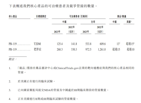在招股書中,派格生物提到,2023年9月,PB-119在中國用於治療T2DM的新藥上市申請(NDA)已獲國家藥監局受理,公司預期最早於2024年四季度獲得國家藥監局的NDA批准,並於2025年在中國商業化推出用於治療T2DM的PB-119。