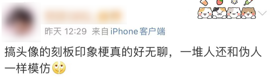 從這個梗的意義來看似乎更是離譜,只是因為一些刻板印象就對這種頭像的使用羣體進行羣嘲,以此展現自己的優越感和審美差異。