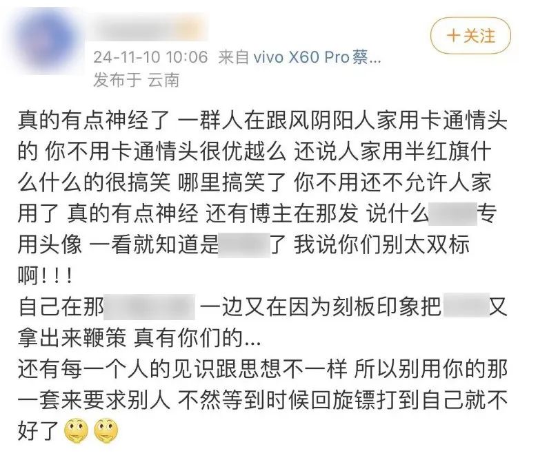 這似乎就有網絡霸凌的嫌疑,畢竟只是個別人的行為,卻讓所有用這類頭像的人都被無差別地圖炮。