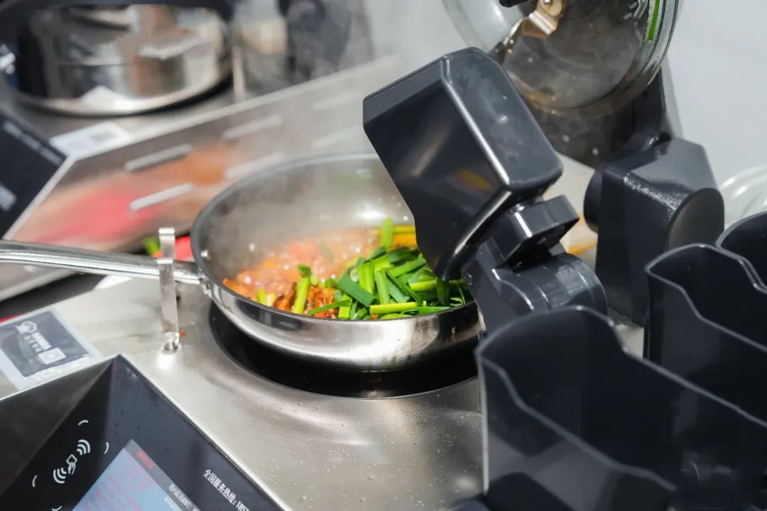 值得注意的是,智能炒菜機器人在炒菜效率方面有着更突出的優勢。體驗中心現場使用的智能炒菜機器人可以一台同時翻炒4道菜,佔地面積僅1平米,只需一人操作,因此炒菜效率比普通中餐廚師更高。