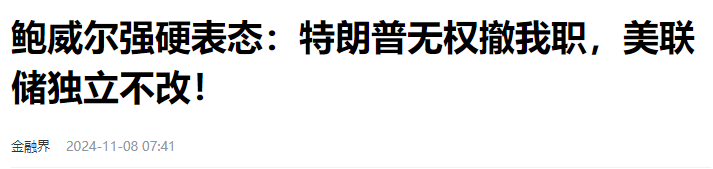 11月8日,在美聯儲舉行利率決議發佈會的時候,就有記者問鮑威爾,如果特朗普要求他辭職,他是否會辭職?