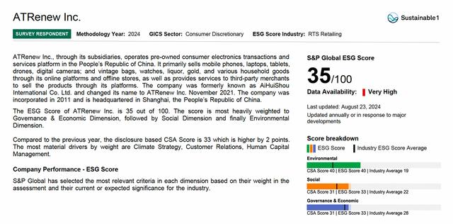 8月,在標普全球企業可持續發展評估(“CSA”)最新ESG評價中,萬物新生取得35分,較2023年進一步提升,超過了全球93%的零售業同行企業,數據可及性評級為“非常高”。