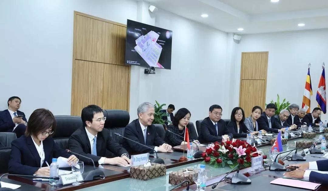 會上,雙方討論德崇扶南運河項目落實進展以及推進柬埔寨鐵路現代化等話題。