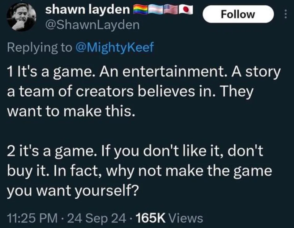 比如之前《龍騰世紀》系列的知名製作人Gaider,面對玩家對新作的嘲諷,大罵玩家是“成人內容看多的loser”,並將他們的審美定義為過時。