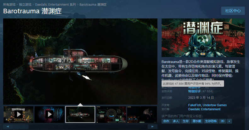但它也是那種火出圈、火出氣質的硬核遊戲。目前《潛淵症》在Steam有超過4.7萬條評論,好評率為94%。