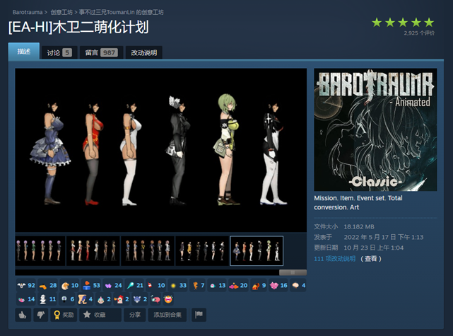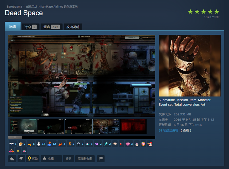 對遊戲內容瞭如指掌的老船員,則會把通關後的成百上千個小時花在《潛淵症》的模組上。他們不僅用海量模組武裝自己,也會自制並上傳模組造福他人,享受全新樂趣。光是Steam創意工坊,就能搜到超過6萬項條目,比起不少自由度更勝一籌的開放世界遊戲還熱門。