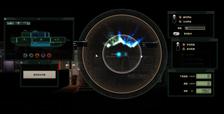 熟悉機制的玩家們還須學會多人協作。在設計潛艇的運作機制時,FakeFish力求“讓每位船員始終有事可做”。例如,艦長通過聲納監控、指揮炮手瞄準敵人,炮手在其他船員協助下製作或裝填彈藥,這些步驟都需多人協作以達到最高效率。