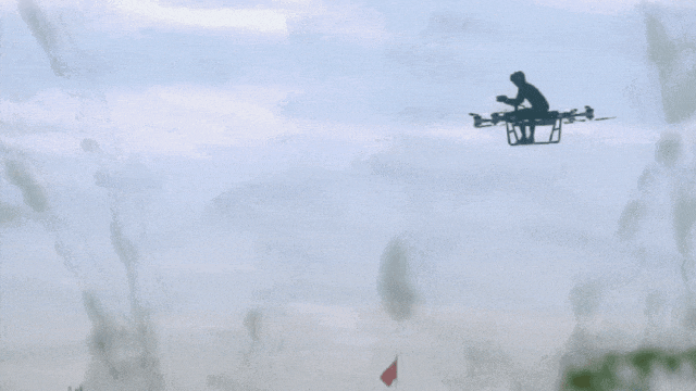 他還研發了一架雙人版飛行摩托,可以帶着投資人一起飛,希望能打動對方。