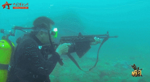 ▲蛙人用06式水下步槍在海底射擊的畫面,雖然射程最多隻有30米,但常規普通步槍在水下的射程大概只有2米。