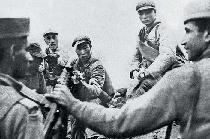 ▲東線總指揮許世友在接見作戰英模代表時,與李永亮握手。