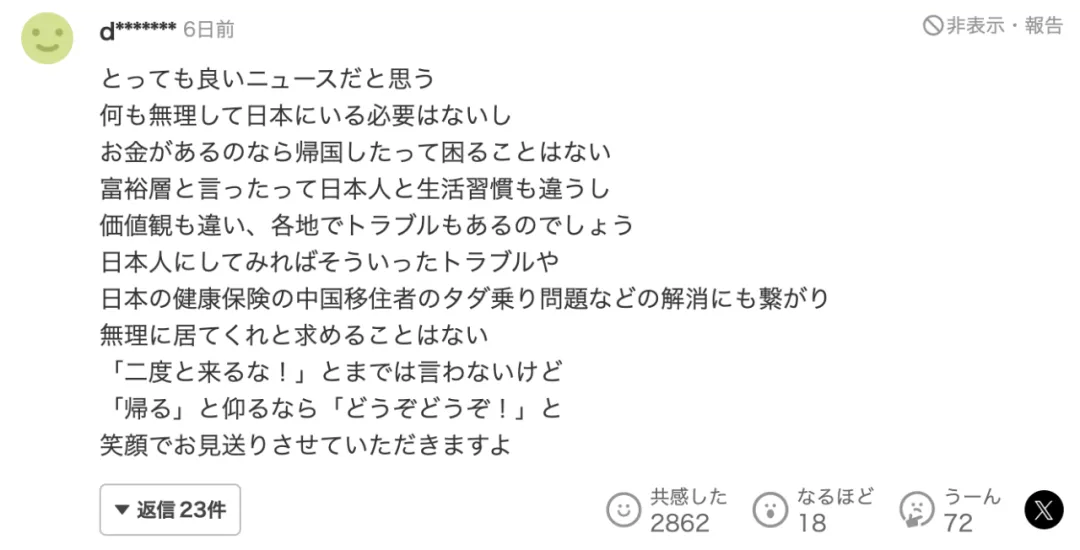 日本網友對這條新聞也是十分感慨,表示很理解在異國他鄉生活得不習慣,想回去的想法。