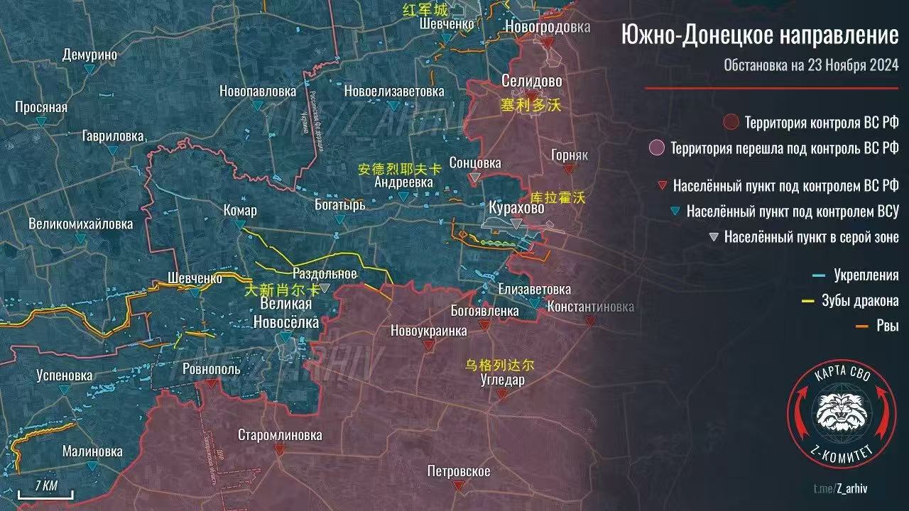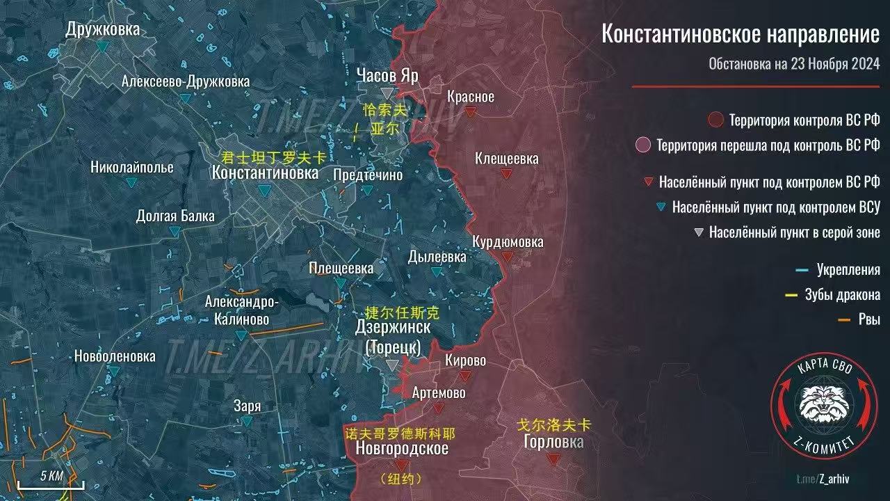 洽索夫亞爾和捷爾德斯克方向,俄軍還在堅持強攻烏軍堡壘,讓棉花絮很無語,目前取得的進展很有限,但是俄軍還是繼續傾斜着彈藥以給予烏軍殺傷。