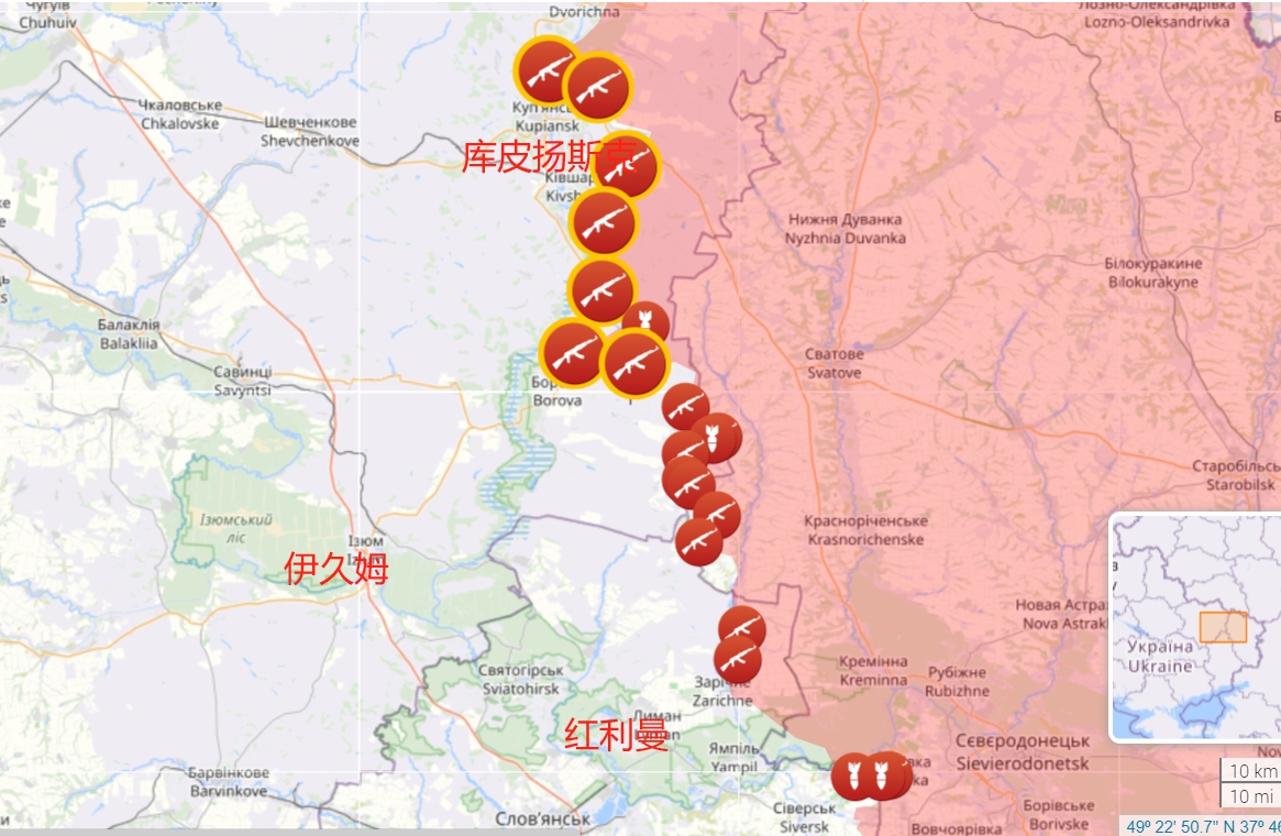 扎波羅熱方向,俄軍一天時間就快速突破大諾沃希爾卡的烏軍防線,在其東面推進 9 公里,打到了郊區。在其東北側切斷其最關鍵的主補給線,目前大諾沃希爾卡只剩下北一條補給線暢通。紅軍城方向俄軍圍繞M30補給線及塞裏多沃這個前進基地,在修整後根據棉花絮之前判斷的一樣往西部多個方向推進且取得進展。