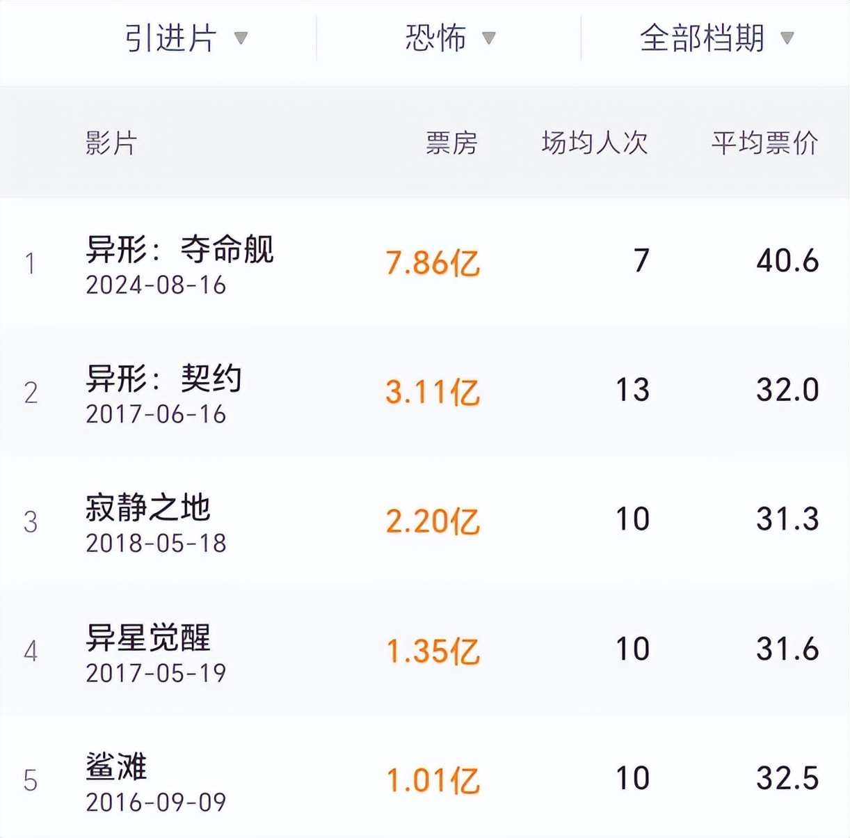 比如《異形》系列、《寂靜之地》《忌日快樂》,都有幾千萬到幾億不等的票房。