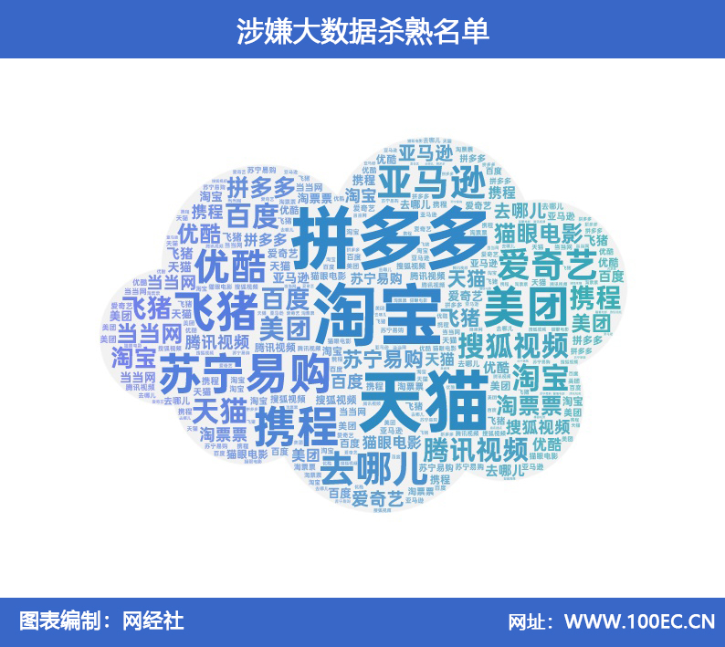 網經社據公開報道統計,此前包括淘寶、天貓、亞馬遜、美團、小紅書、蘇寧易購、拼多多、飛豬、攜程、去哪兒、優酷、愛奇藝、搜狐視頻、百度、騰訊視頻、貓眼電影、淘票票、噹噹網等數十家平台均被曝疑似存在“殺熟”情況,涵蓋網絡購物、在線旅遊、在線票務、在線視頻等多個領域。