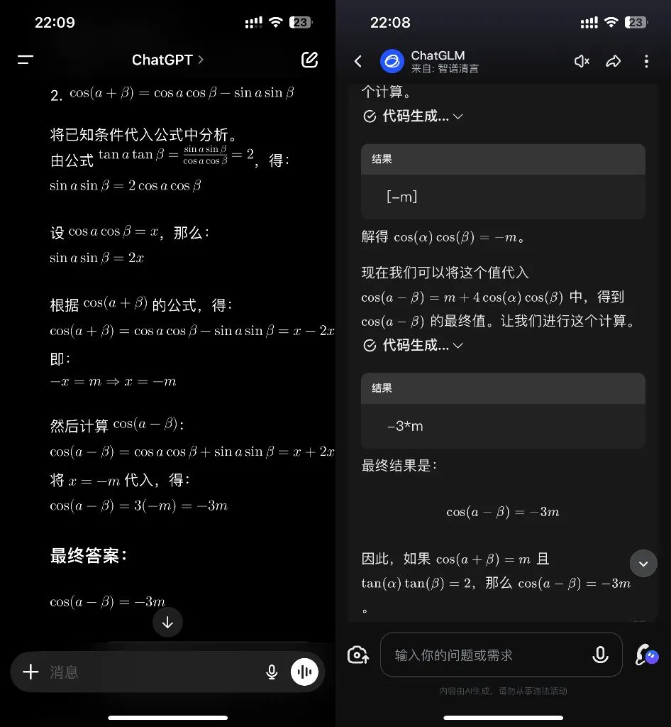 這個問題我同時也問了智譜清言和 ChatGPT ,答案倒是沒出入,但區別於一個步驟一個步驟列出來, Kimi 數學版給我一種,它真的在模仿人類思考的過程。