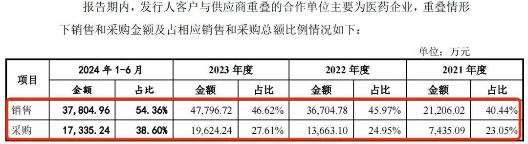 在此情況下,報告期內,博苑股份銷售金額分別為2.12億元、3.67億元、4.78億元和3.78億元,佔比近五成;採購金額7435.09萬元、1.37億元、1.96億元和1.73億元,比例在三成左右。