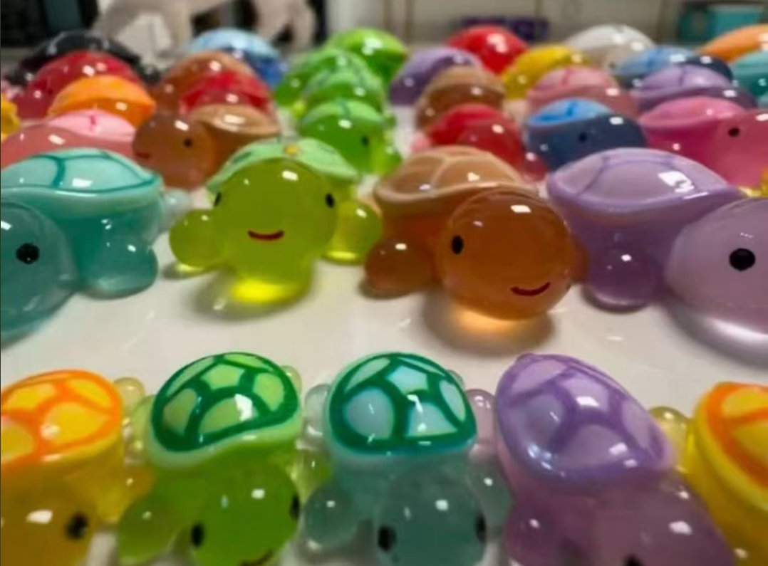 “烏龜”其實是一種樹脂材料的擺件,除了擺放毫無用處,甚至被網友戲稱為“美麗廢物”。在1688上,每隻售價僅為 0.55 元,然而在“對對碰”直播間裏,高達19.9元9只的價格卻能吸引眾多消費者下單。
