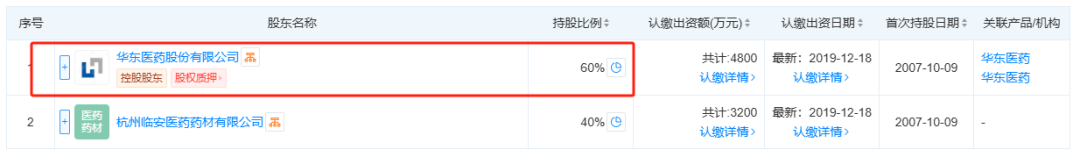 天眼查顯示,華東中藥的控股股東為華東醫藥,後者持股比例為60%。
