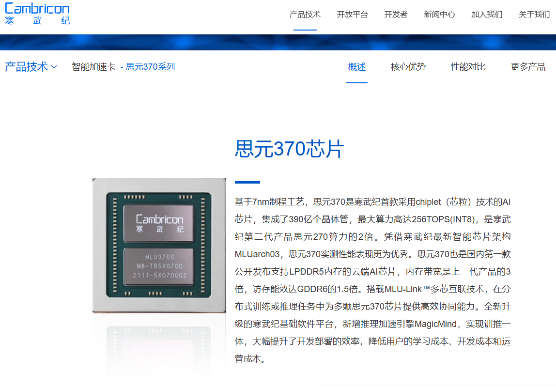 據悉,這款早在去年三季度就已完成流片,並於今年二季度陸續送測客户的思元370,現在已經進入銷售早期,並已經和阿里雲、百度等國內主流互聯網廠商進行深入的應用適配,在語音、視覺等場景的性能表現超出客户預期。
