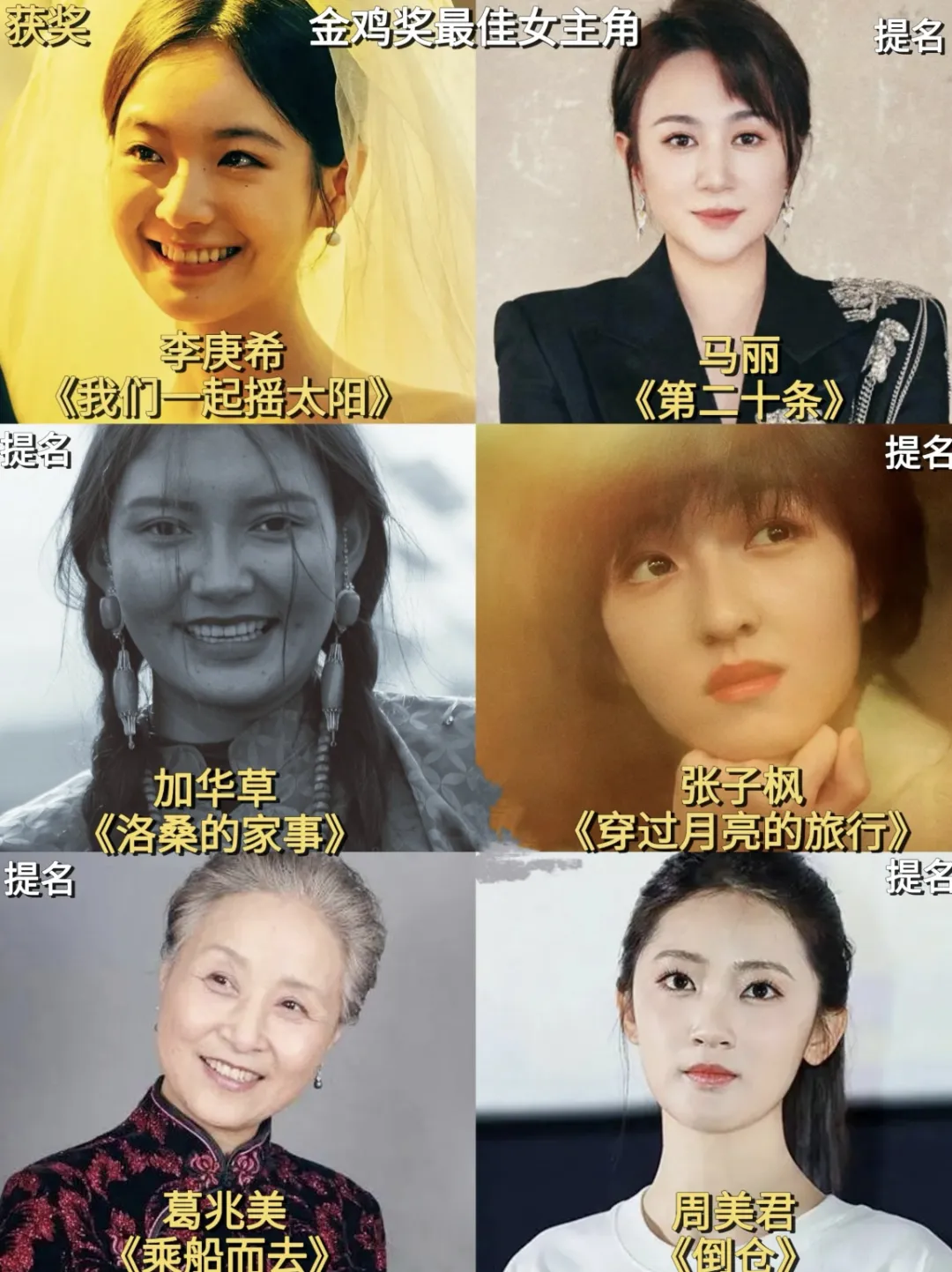 謀女郎憑藉《送你一朵小紅花》提名金雞影后,於是同題材同導演同編劇加持下的《我們一起搖太陽》,助力小公主拿下此次金雞影后。