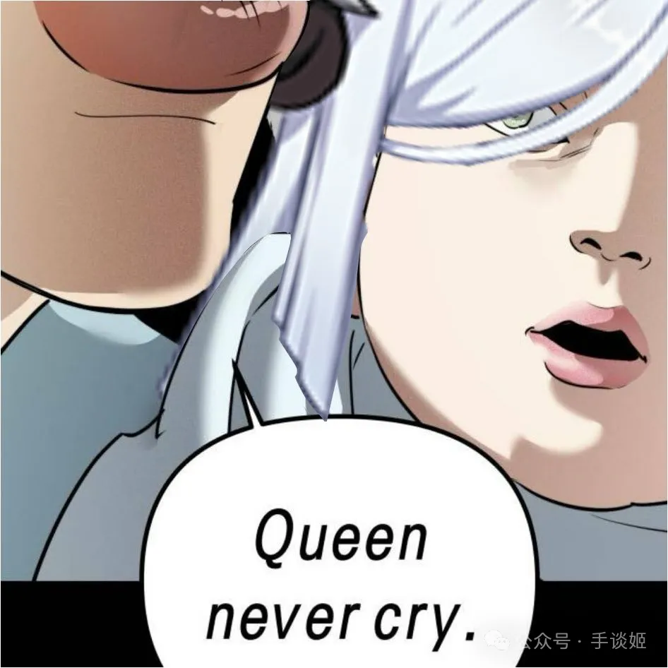 最近有一部韓國漫畫就因為角色突然間顏藝在互聯網上爆火,梗的名字叫“Queen never cry”(女王永不落淚)。