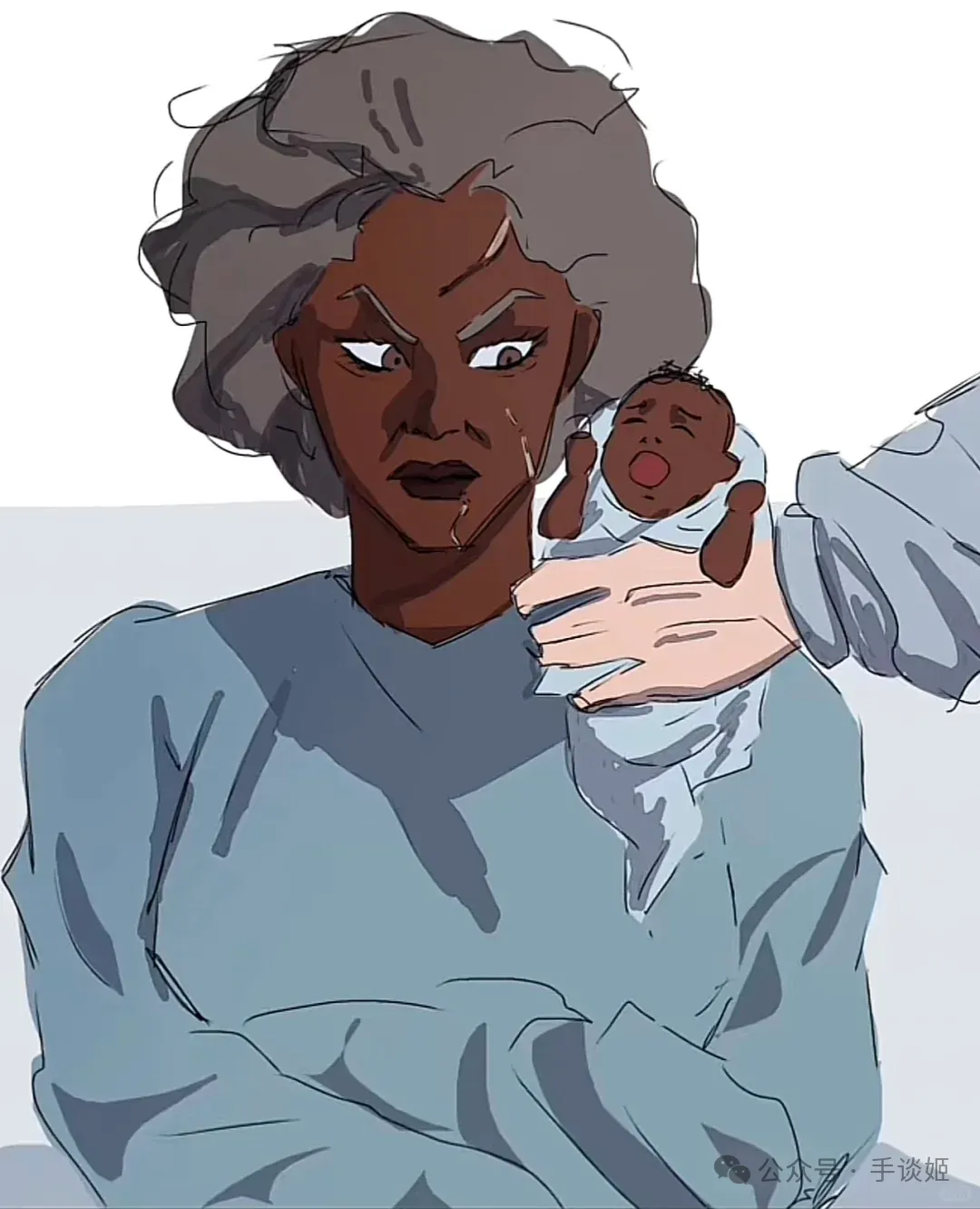 一位看上去非常“英氣”的產婦看着啼哭的嬰兒,有些不耐煩。