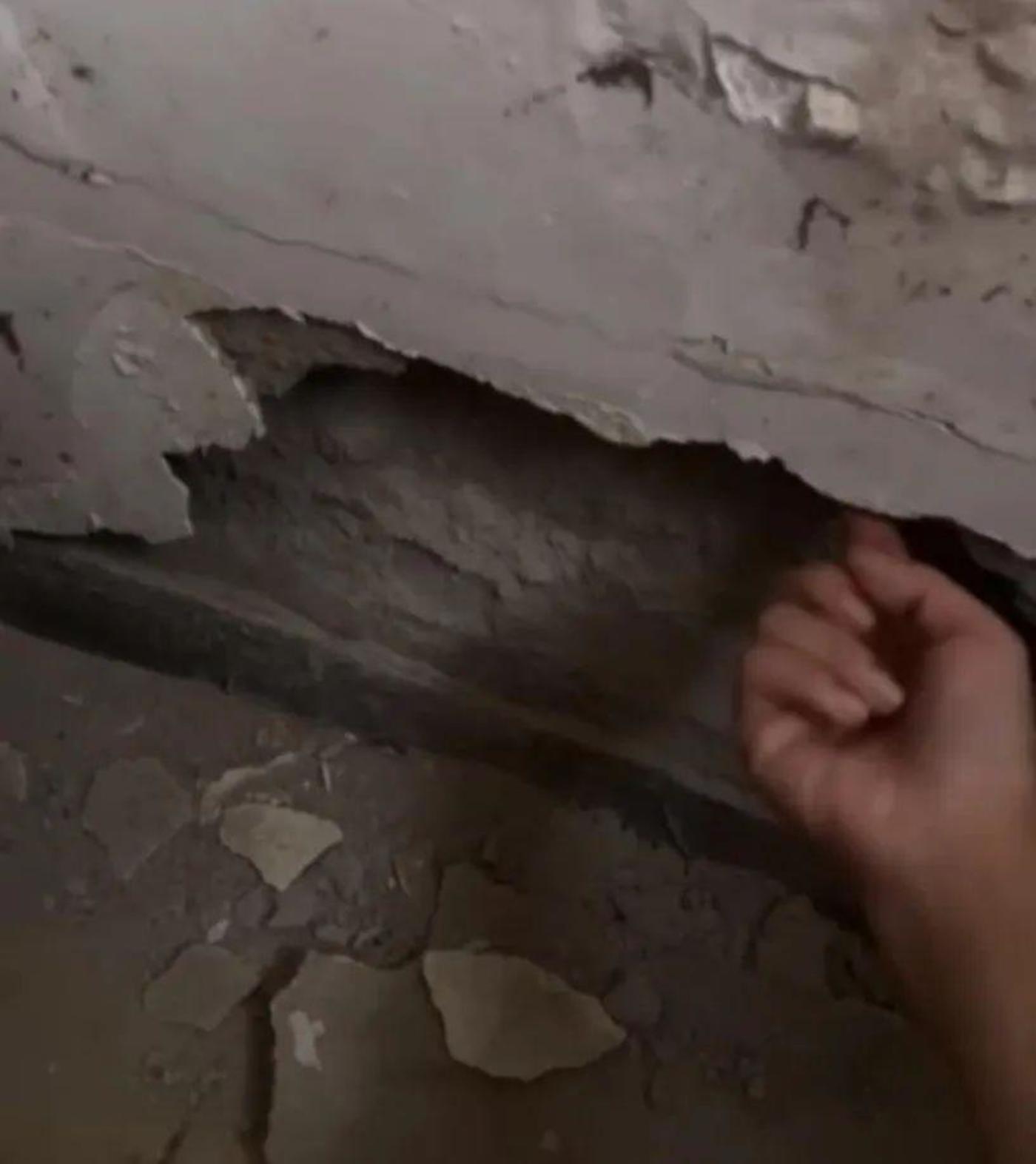 在入住新家之後,餃子特意剪了一段卡點的視頻,發到了社交平台上。視頻中,房子灰濛濛的,她指着牆上的一個大洞呵呵地樂。