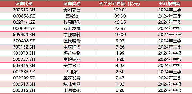 今年初以來,消費ETF(159928)標的指數42只成分股中,共有14只分紅,佔比高達33%。累計現金分紅總額超515億元!