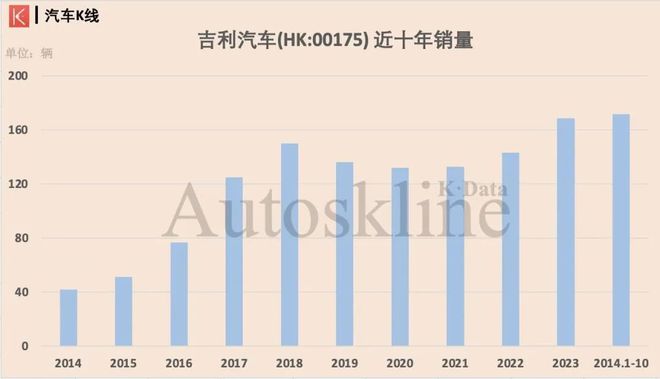這種模式一度非常奏效。2017年,吉利汽車銷量達124.7萬輛,成為銷量最高汽車品牌。直到2022年,吉利都穩坐國內汽車銷量冠軍寶座。