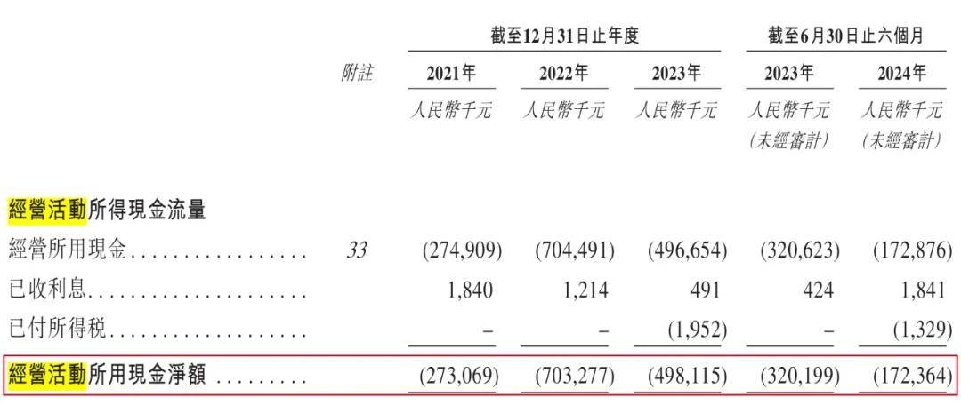 從企業自身來看,公司欠缺“造血能力”。2021年至2024年上半年,公司實現經營現金流淨額-2.73億元、-7.03億元、-4.98億元、-1.72億元,長期處於流出狀態。