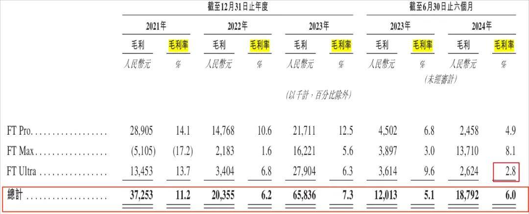 從過往數據來看,福瑞泰克的利潤已經相當微薄。2021-2024年上半年,公司毛利率分別為11.2%,6.2%、7.3%及6.0%,整體處於下滑趨勢。