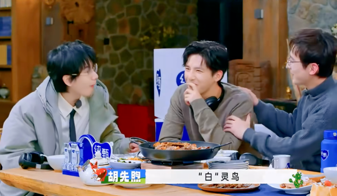 比如戴上耳機,依次用第一個人聽到的旋律唱出面前不同歌詞完成傳遞猜歌的遊戲,這一遊戲讓唯一一個音樂學院畢業、卻屢屢唱不準旋律的白敬亭喜提“白靈鳥”稱號,效果十足;粵語猜詞遊戲,更是在王安宇宣稱對自己粵語信心滿滿,開口卻各種口音齊飛的反差中,不僅讓賈冰一瞬間笑到紅温、失去表情管理,也成功收穫屏幕前一眾網友在各種平台的彈幕上打下了“哈哈哈哈”“笑死我了”等評論。