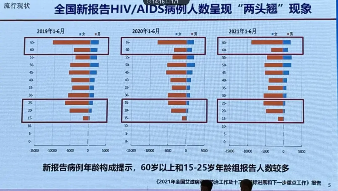 1. 12月1日,世界艾滋病日,國家衞健委衞生髮展研究中心等單位聯合發佈的《中國青年生殖健康藍皮書》顯示,2023年共報告15-24歲青年學生病例3010例。 中疾控發佈的一份報告披露,2010年至2019年,包括年輕學生在內的15-24歲人羣累計報告艾滋病感染者141557例,男女比例為33.9比1,平均年齡19.9歲。 另據深圳疾控中心披露,艾滋病感染出現低齡化趨勢,初中、高中段病例多次出現,最小一例尚不足13歲。 近年來,上海、長沙、西安、南昌、南京、北京等大學聚集的城市,艾滋病感染學生約60%存在網絡社交平台交友這一行為。