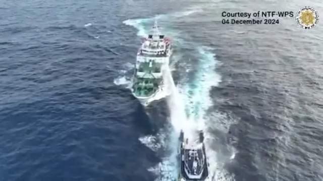 據瞭解,菲律賓出動了9701、4409號艦船,以及3002、3003號公務船企圖侵闖我黃巖島領海,中方海警在依法管控的時候,菲方艦船採取危險方式接近執法船,中方依法依規進行了管控。