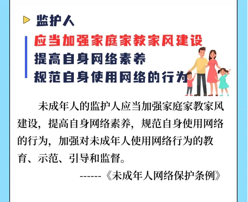 第二,家長們在家裏減少使用社交媒體的時間,監督孩子遠離社交軟件。家長是孩子成長的第一任導師,中華民族向來有重視家庭教育和家風傳承的美德,在2022年國家也正式頒佈和實施了《中華人民共和國家庭教育促進法》。當你們放下手機,就能將更多的注意力放在孩子們身上,傾聽他們的心聲,與他們一同玩樂、學習,見證他們成長的每一個瞬間,這必將有助於孩子們形成積極健康的心理和正確的價值觀。