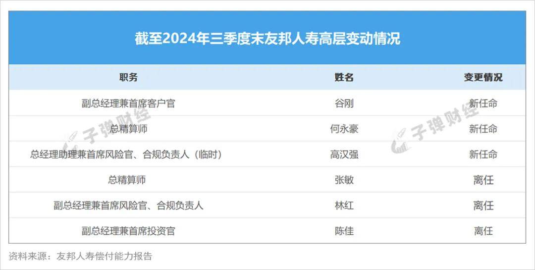 友邦人壽總精算師張敏;副總經理兼首席風險官、合規負責人林紅;副總經理兼首席投資官陳佳三人離任。